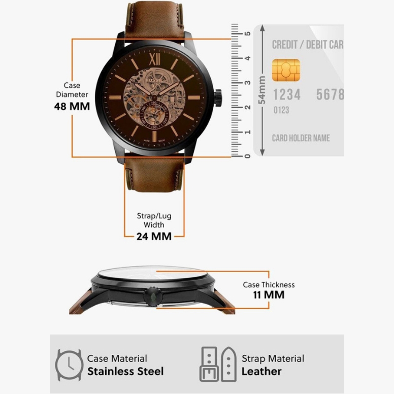 Upgrade your wrist game with the timeless elegance of the Fossil Towns Automatic ME3098. Designed for men who appreciate both style and craftsmanship, this watch features a stunning skeleton dial that showcases the intricate automatic movement inside — a true mark of premium watchmaking.